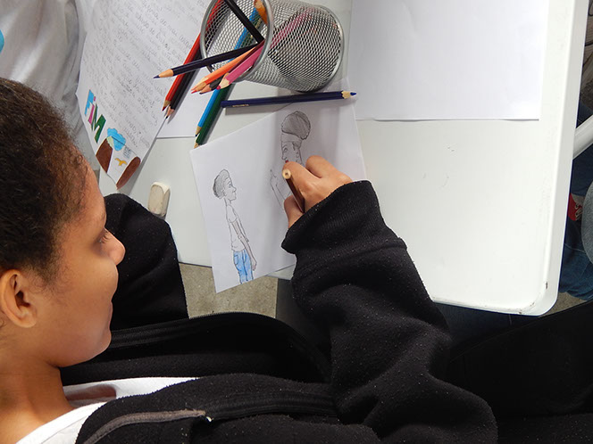 III. Oficina de Criação do Livro: o participante cria um livro em grupo de forma colaborativa. É estimulado a perceber que ao seu redor podem existir histórias e personagens.